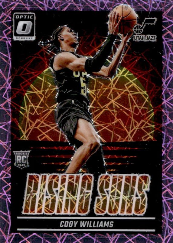 2024-25 Donruss Optic Rising Suns Pink Laser #8 Cody Williams Jazz RC Rookie /79