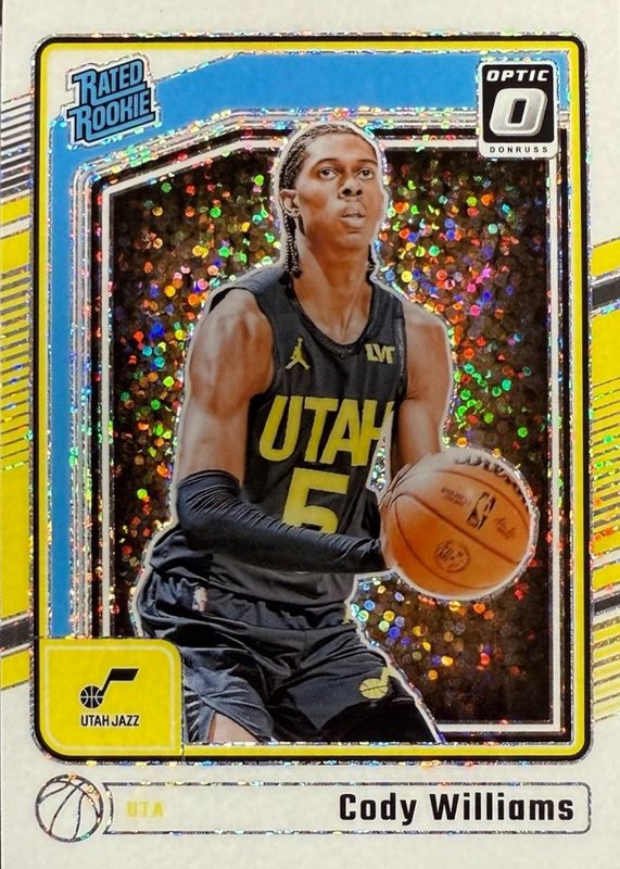 This card is 1 of 131 Cody Williams' card variations in the 2024 Optic set being tracked by Sports Card Investor, including Base, Blue Velocity, Checkerboard, Choice, and Fast Break.