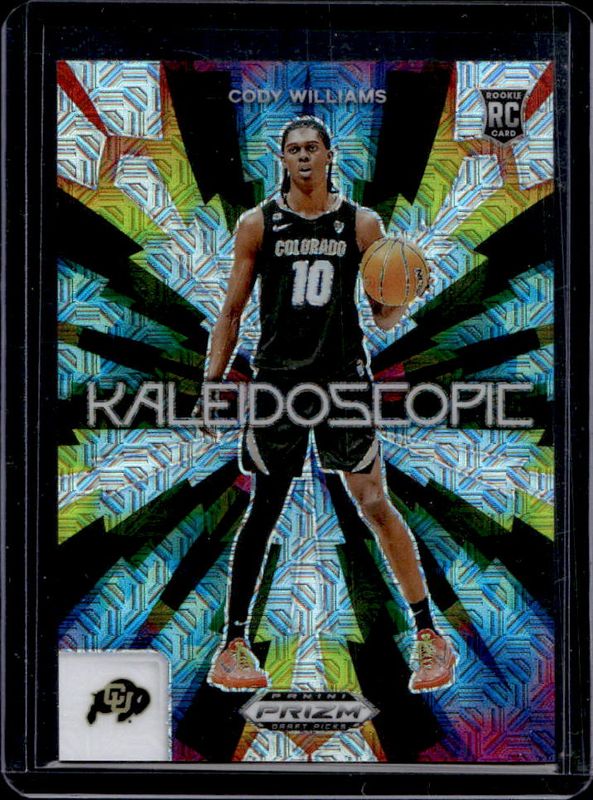 The Cody Williams 2024 Prizm Draft Picks #18 Kaleidoscopic - Mojo /25 Rookie card is 1 of 128 Cody Williams' card variations in the 2024 Prizm Draft Picks set being tracked by Sports Card Investor, including #80b Base, #80 Base, #80b Green, #80 Green, and #80 Green Wave.