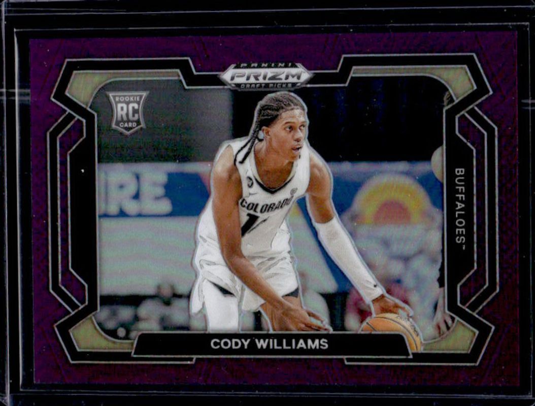 The Cody Williams 2024 Prizm Draft Picks #80b Purple /75 Rookie card is 1 of 128 Cody Williams' card variations in the 2024 Prizm Draft Picks set being tracked by Sports Card Investor, including #80b Base, #80 Base, #80b Green, #80 Green, and #80 Green Wave.