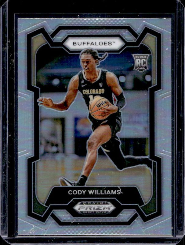 The Cody Williams 2024 Prizm Draft Picks #80 Silver Rookie card is 1 of 128 Cody Williams' card variations in the 2024 Prizm Draft Picks set being tracked by Sports Card Investor, including #80b Base, #80 Base, #80b Green, #80 Green, and #80 Green Wave.