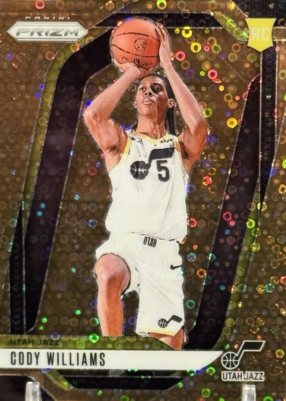 The Cody Williams 2024 Prizm #232 Fast Break Bronze /20 Rookie card in Raw condition has not changed in price in the last 30 days and was last sold for $66.00 .
