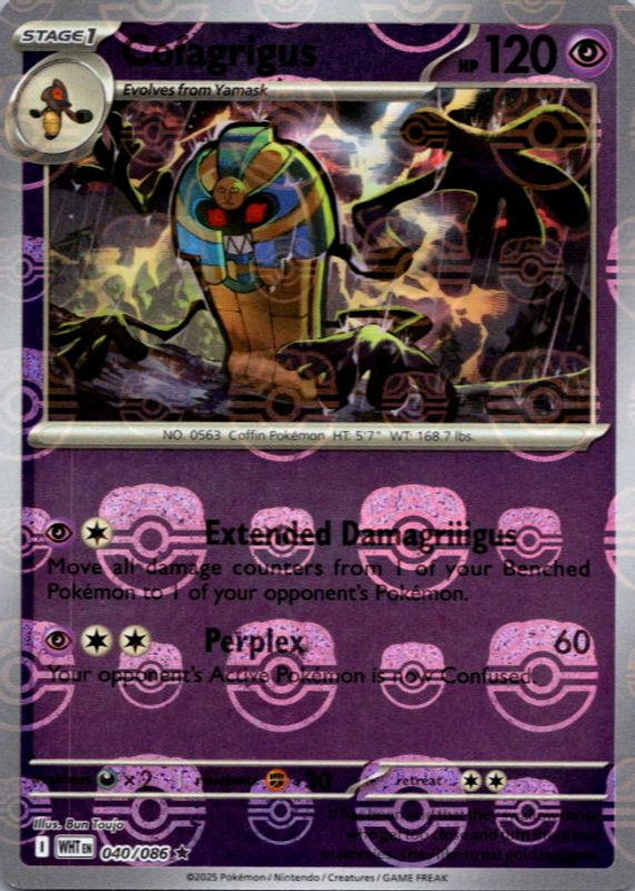 Cofagrigus 2025 Scarlet & Violet: White Flare #040/086 Master Ball Reverse Holo RAW TCG (LIGHTLY PLAYED) Price Guide
