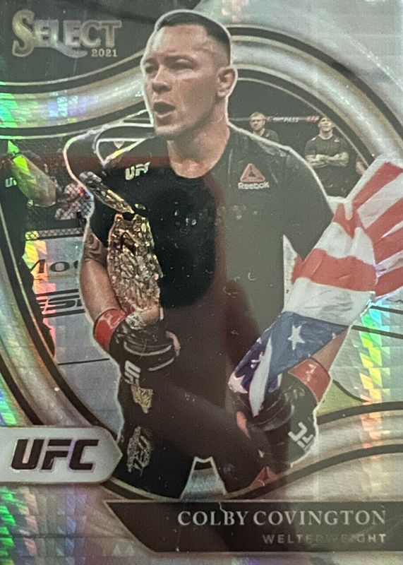 This card is 1 of 48 Colby Covington's card variations in the 2021 Select UFC set being tracked by Sports Card Investor, including Concourse Disco, Concourse Scope, Concourse Silver, Concourse Tri-Color, and Octagonside Disco.
