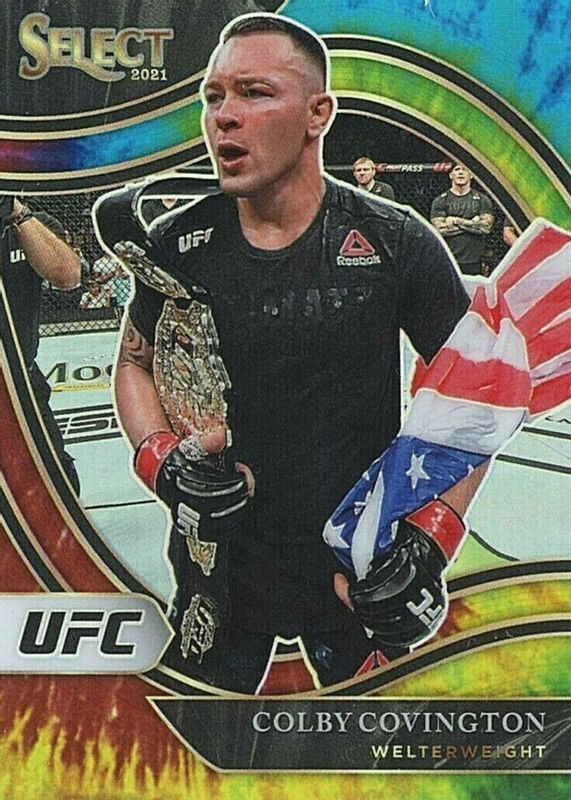 This card is 1 of 48 Colby Covington's card variations in the 2021 Select UFC set being tracked by Sports Card Investor, including Concourse Disco, Concourse Scope, Concourse Silver, Concourse Tri-Color, and Octagonside Disco.