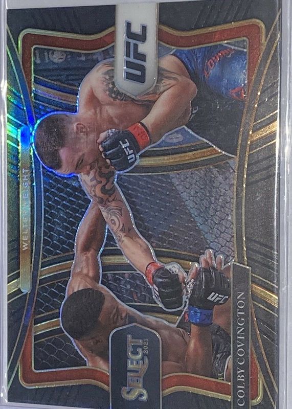 This card is 1 of 48 Colby Covington's card variations in the 2021 Select UFC set being tracked by Sports Card Investor, including Concourse Disco, Concourse Scope, Concourse Silver, Concourse Tri-Color, and Octagonside Disco.