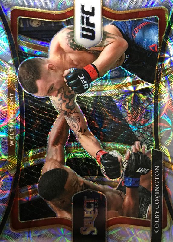 This card is 1 of 48 Colby Covington's card variations in the 2021 Select UFC set being tracked by Sports Card Investor, including Concourse Disco, Concourse Scope, Concourse Silver, Concourse Tri-Color, and Octagonside Disco.