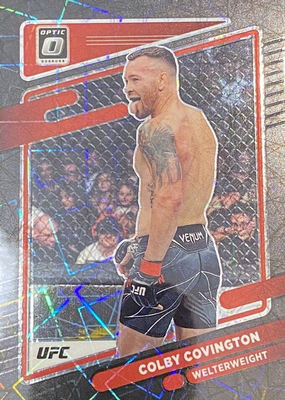 This card is 1 of 17 Colby Covington's card variations in the 2022 Optic UFC set being tracked by Sports Card Investor, including Blue Velocity, Holo, Purple, Red /199, and Blue /99.