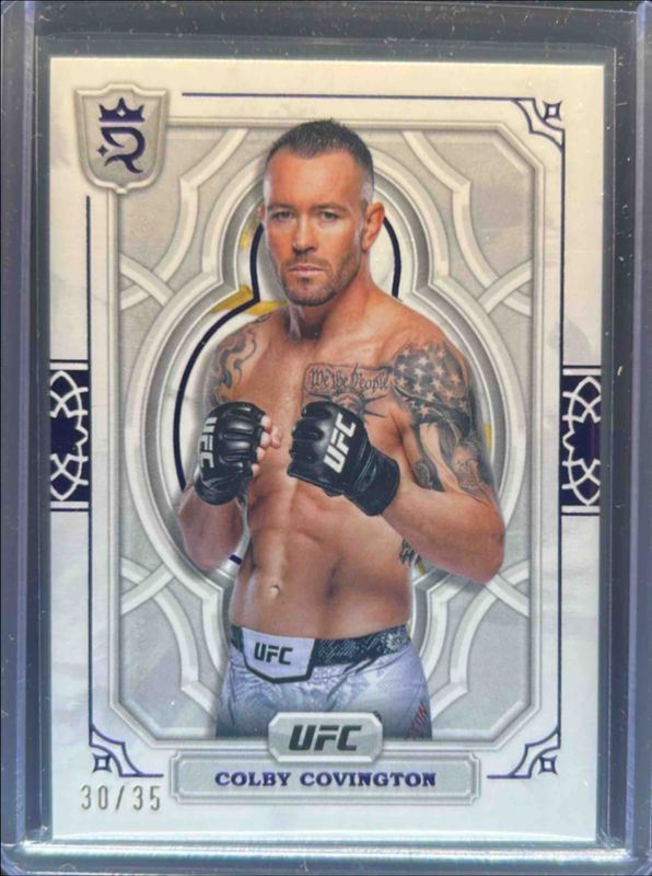 The Colby Covington 2024 Topps UFC Royalty #64 Purple /35 card is 1 of 30 Colby Covington's card variations in the 2024 Topps UFC Royalty set being tracked by Sports Card Investor, including Base /99, Blue /25, Red /15, Gold /10, and Green /5.