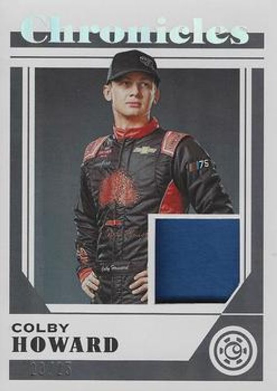The Colby Howard 2023 Chronicles NASCAR #CS-CH Chronicles Swatches - Holo Silver /25 card is 1 of 24 Colby Howard's card variations in the 2023 Chronicles NASCAR set being tracked by Sports Card Investor, including Chronicles Swatches, Obsidian Signatures, Immaculate /99, Immaculate - Holo Gold /89, and Immaculate - Red /75.