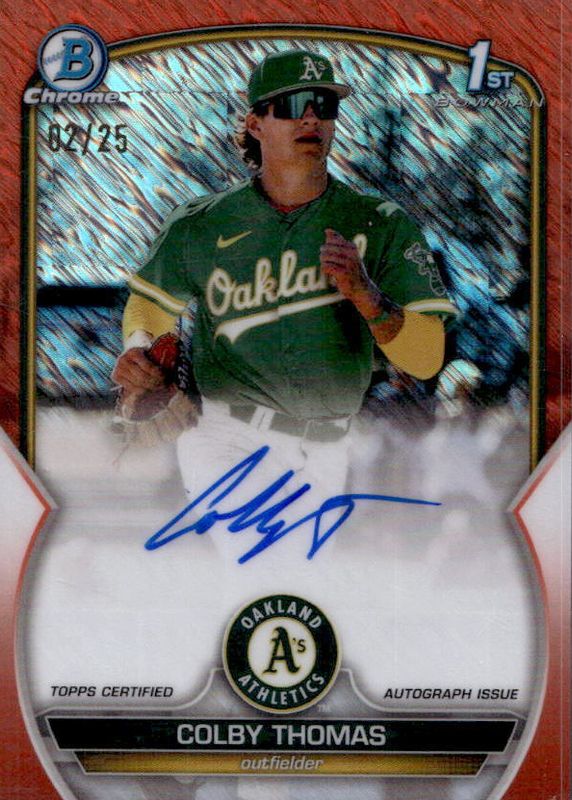 Colby Thomas 2023 Bowman Chrome 1st Orange Shimmer Refractor Auto SP 16/25 - A’s
