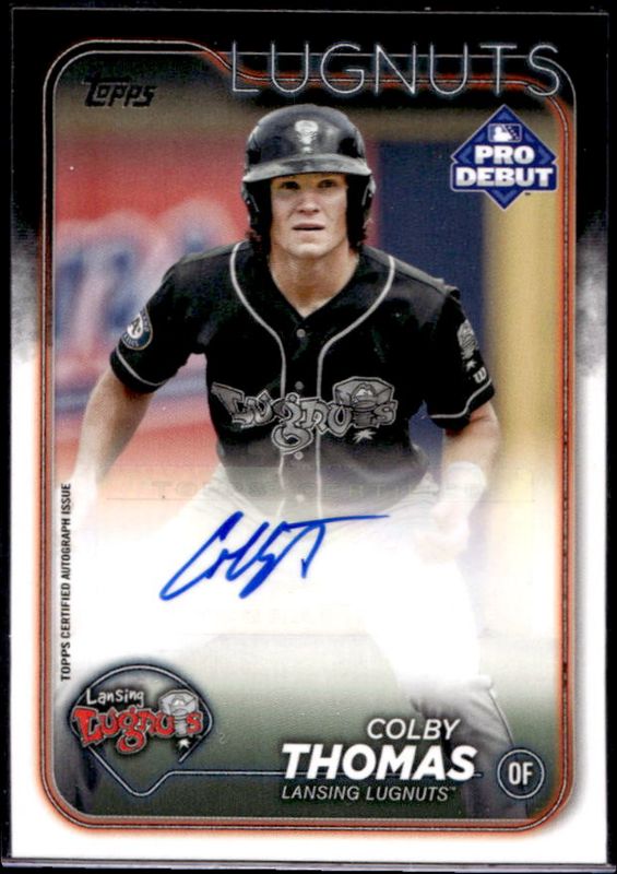The Colby Thomas 2024 Topps Pro Debut #PD-79 Base Autographs card is 1 of 31 Colby Thomas' card variations in the 2024 Topps Pro Debut set being tracked by Sports Card Investor, including Base, Fuchsia Foil /199, Sparkle Foil /175, Blue Foil /150, and Green Foil /99.