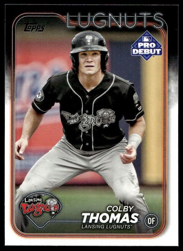 The Colby Thomas 2024 Topps Pro Debut #PD-79 Base card is 1 of 31 Colby Thomas' card variations in the 2024 Topps Pro Debut set being tracked by Sports Card Investor, including Fuchsia Foil /199, Sparkle Foil /175, Blue Foil /150, Green Foil /99, and Aqua Foil /75.