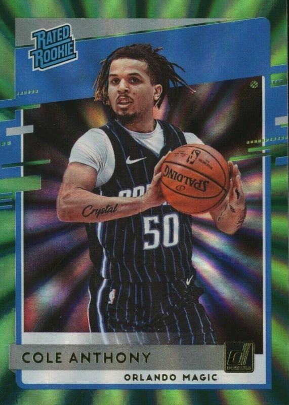 2020-21 Panini Donruss Basketball Cole Anthony Rated Rookie Card Green Laser NM+