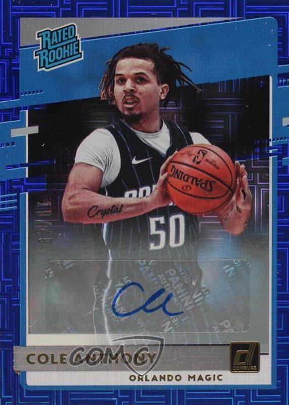 The Cole Anthony 2020 Donruss #208 Rated Rookie Signatures - Choice Blue /49 card in Raw condition has not changed in price in the last 30 days and was last sold for $14.58 .