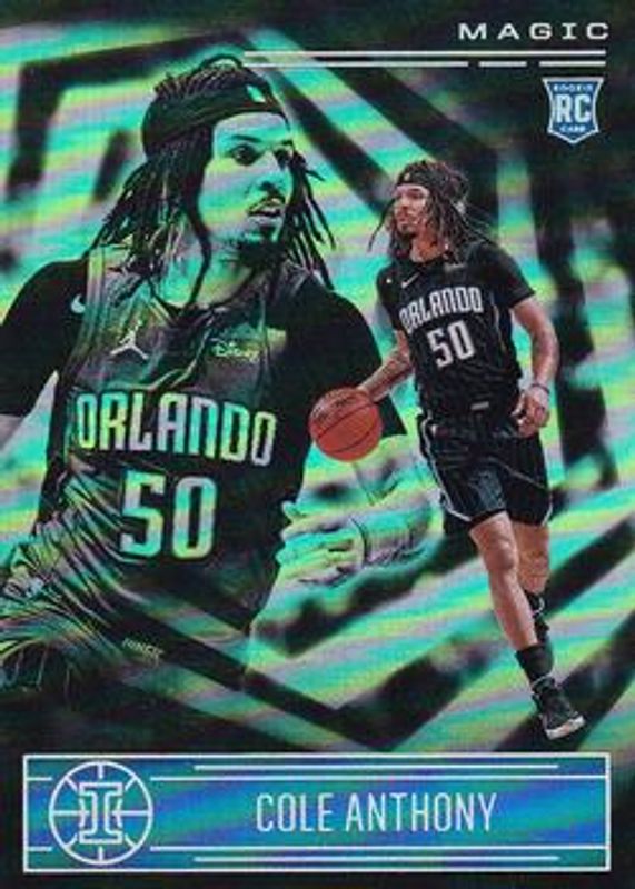 The Cole Anthony 2020 Illusions #156 Trophy Collection Emerald Rookie card is 1 of 46 Cole Anthony's card variations in the 2020 Illusions set being tracked by Sports Card Investor, including Base, Asia Trophy Collection Base, Asia Trophy Collection Red, Trophy Collection Bronze, and Trophy Collection Orange.
