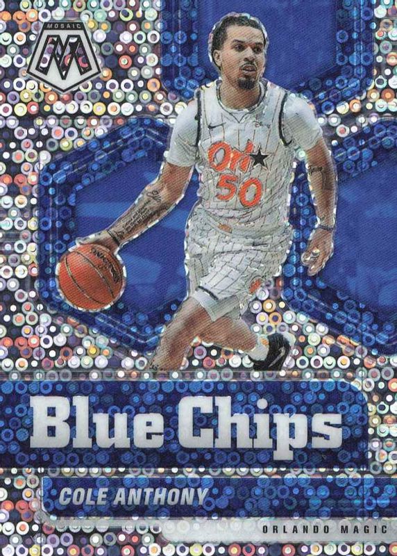 2020-21 Mosaic Fast Break Cole Anthony BLUE CHIPS INSERT Silver Disco #11