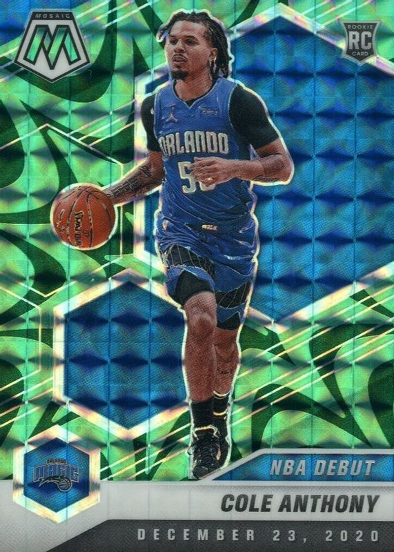 2020-2021 Panini Mosaic NBA Debut Green Reactive Cole Anthony #268 Rookie Card