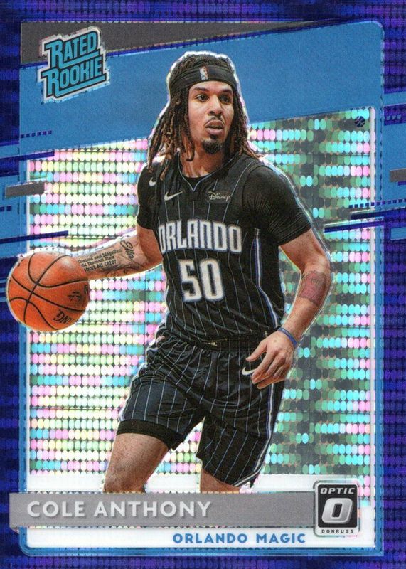 2020-21 Panini Donruss Optic Rated Rookie Cole Anthony #165 Purple Pulsar Prizm