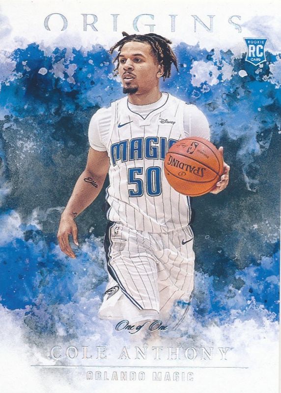 This card is 1 of 39 Cole Anthony's card variations in the 2020 Origins set being tracked by Sports Card Investor, including Base, Red, Blue /99, Orange /75, and Pink /60.