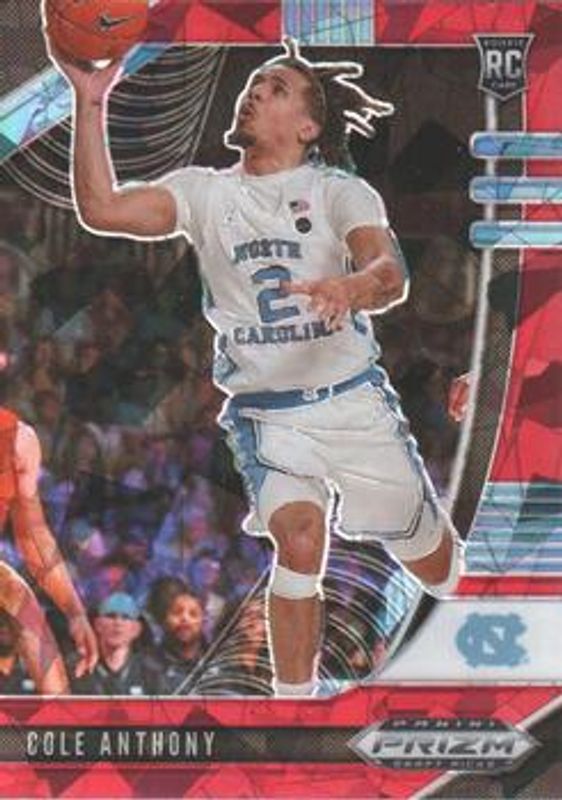 The Cole Anthony 2020 Prizm Draft Picks #49 Red Ice Rookie card is 1 of 122 Cole Anthony's card variations in the 2020 Prizm Draft Picks set being tracked by Sports Card Investor, including #9 Base, #49 Base, #89 Base, #9 Choice Blue Yellow Green, and #49 Choice Blue Yellow Green.