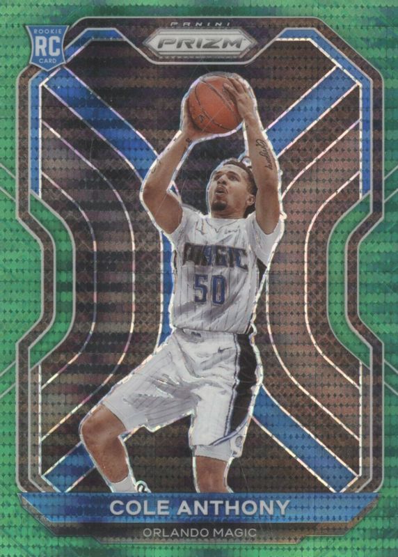 This card is 1 of 63 Cole Anthony's card variations in the 2020 Prizm set being tracked by Sports Card Investor, including Base, Choice Blue Yellow Green, Fast Break, Green, and Green Ice.