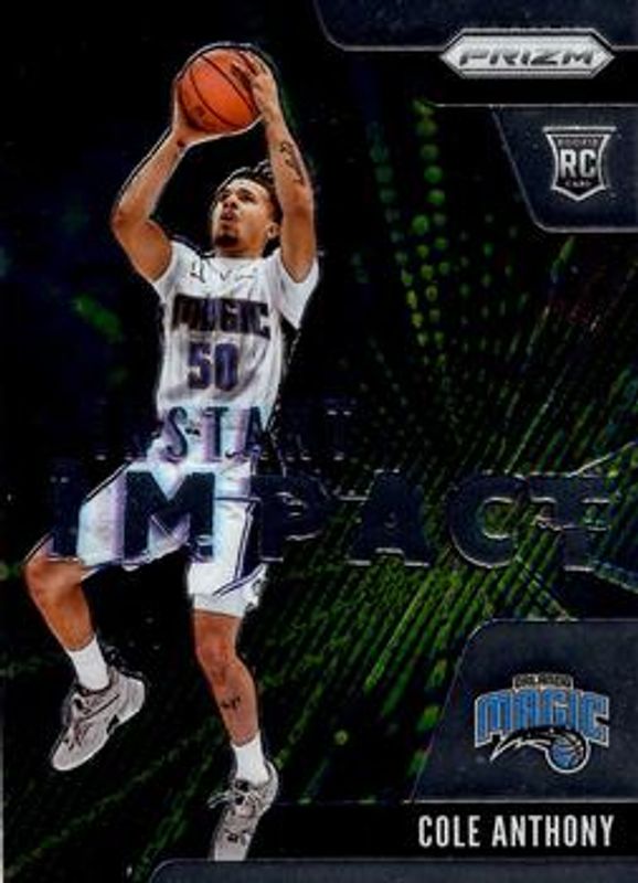 The Cole Anthony 2020 Prizm #12 Instant Impact Rookie card is 1 of 76 Cole Anthony's card variations in the 2020 Prizm set being tracked by Sports Card Investor, including Base, Choice Blue Yellow Green, Fast Break, Green, and Green Ice.
