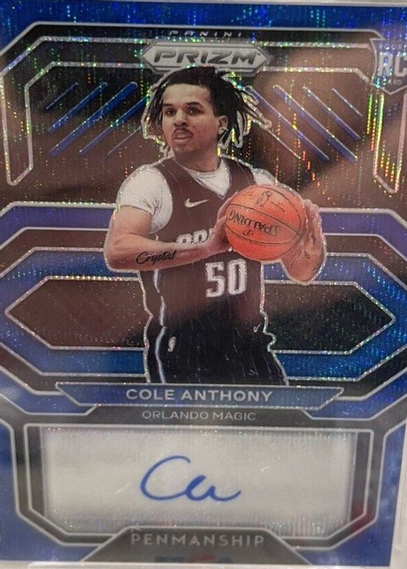 2020-21 Panini Prizm Cole Anthony RC Rookie Penmanship Auto Blue Wave