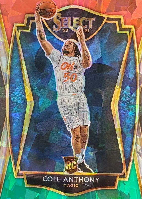 2020-21 Select Cole Anthony RC Red White Green Cracked Ice Premier Level #177