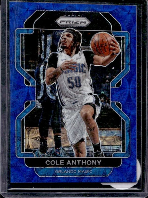 The Cole Anthony 2021 Prizm #121 Choice Blue /39 card is 1 of 60 Cole Anthony's card variations in the 2021 Prizm set being tracked by Sports Card Investor, including Base, Blue NBA 75th Anniversary, Blue Wave, Choice Blue Yellow Green, and Factory Set Blue Hyper.
