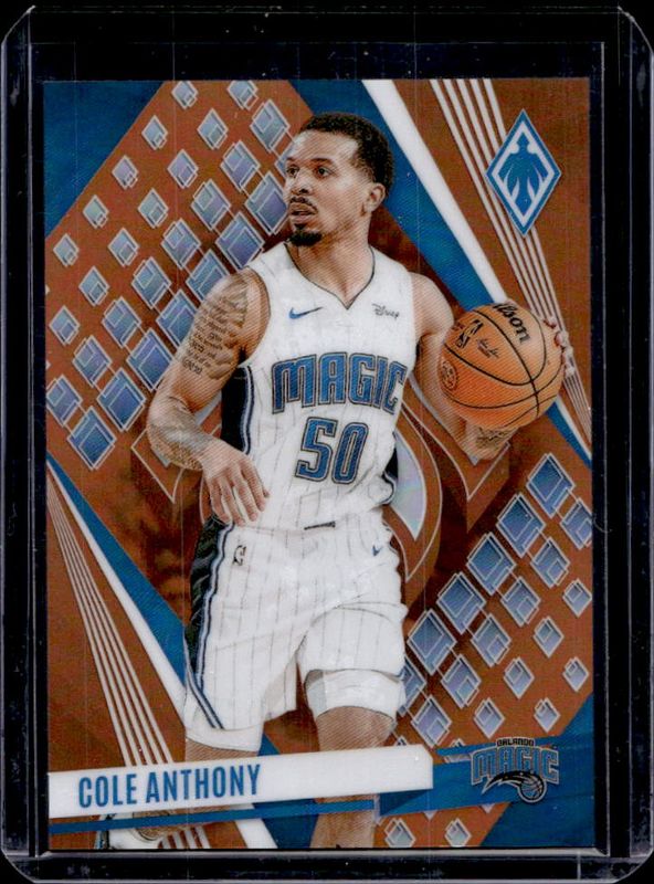 The Cole Anthony 2023 Phoenix #214 Orange /99 card is 1 of 41 Cole Anthony's card variations in the 2023 Phoenix set being tracked by Sports Card Investor, including Base, Blue Ice, Color Burst, Dream Weaver, and Hieroglyphs.