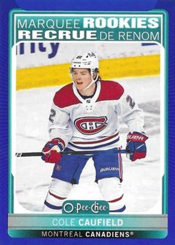 The Cole Caufield 2021 O-Pee-Chee #506 Blue Border Rookie card is 1 of 33 Cole Caufield's card variations in the 2021 O-Pee-Chee set being tracked by Sports Card Investor, including #506c Base, #506 Base, #506b Base, #506 Red Border, and #506 Retro.
