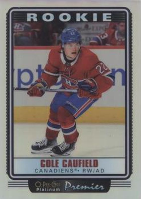 The Cole Caufield 2021 O-Pee-Chee Platinum #OP37 Premier Rookie card is 1 of 45 Cole Caufield's card variations in the 2021 O-Pee-Chee Platinum set being tracked by Sports Card Investor, including Base, Black Shield (Marquee Rookies), Blue Surge, Matte Pink, and Neon Yellow Surge.