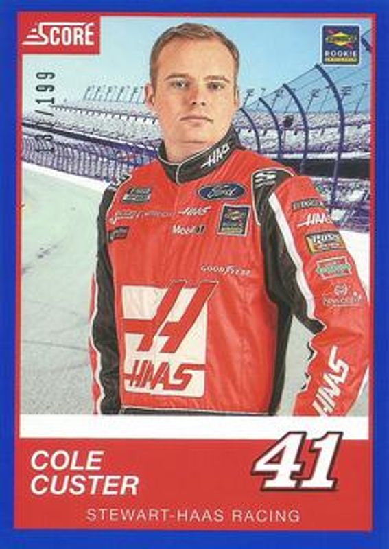 The Cole Custer 2020 Chronicles NASCAR #16 Score Blue /199 card is 1 of 90 Cole Custer's card variations in the 2020 Chronicles NASCAR set being tracked by Sports Card Investor, including Base, Blue /199, Red /99, Purple /25, and Gold /10.