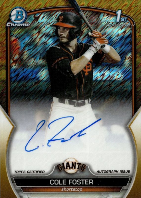 2023 Bowman Chrome Draft Gold Shimmer Refractor Cole Foster 1st Giants AUTO /50