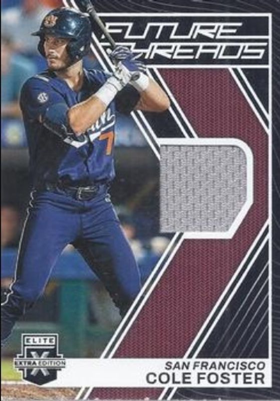 The Cole Foster 2023 Elite Extra Edition #FT-CF Future Threads card is 1 of 55 Cole Foster's card variations in the 2023 Elite Extra Edition set being tracked by Sports Card Investor, including Base, Pink, Signatures, Status Green /499, and Signatures die-cut /399.
