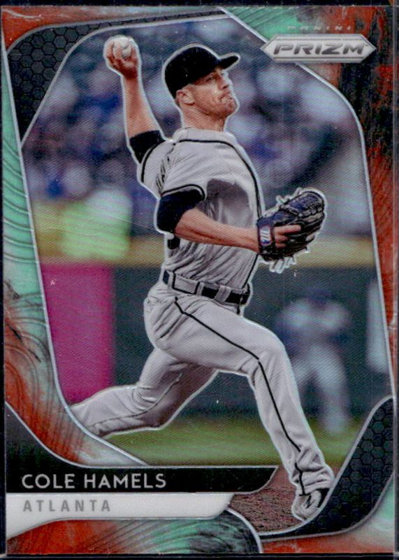 The Cole Hamels 2020 Prizm #38 Cosmic Haze card is 1 of 37 Cole Hamels' card variations in the 2020 Prizm set being tracked by Sports Card Investor, including Base, Blue, Carolina Blue, Green, and Pink.
