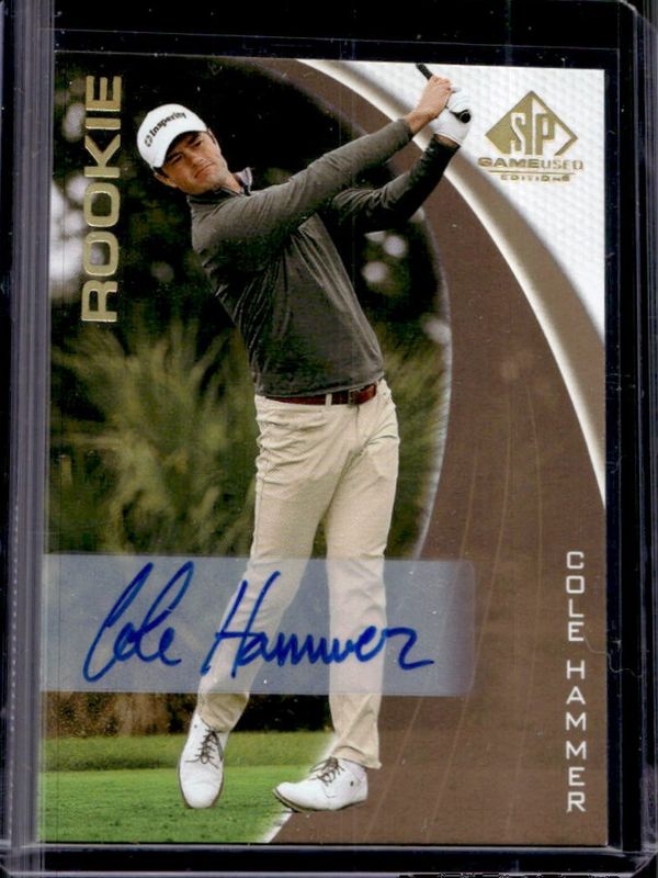 The Cole Hammer 2024 SP Game Used #63 Auto Spectrum /25 card is 1 of 6 Cole Hammer's card variations in the 2024 SP Game Used set being tracked by Sports Card Investor, including #113 Base /599, #63 Base /599, #63 Shirt Gold, #113 Auto Spectrum /25, and #63 Auto Red /15.
