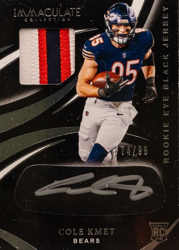 The Cole Kmet 2020 Immaculate #REB-31 Immaculate Rookie Eye Black Jersey Autographs (/99) card in Raw condition has not changed in price in the last 30 days and was last sold for $49.99 .