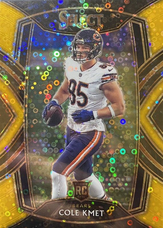 This card is 1 of 121 Cole Kmet's card variations in the 2020 Select set being tracked by Sports Card Investor, including Club Level, Concourse, Field Level, Premier Level, and Club Level Disco.