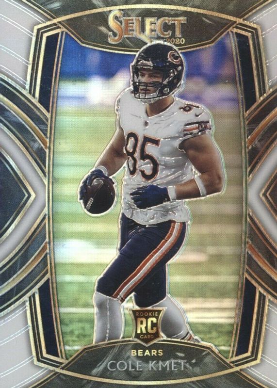 This card is 1 of 121 Cole Kmet's card variations in the 2020 Select set being tracked by Sports Card Investor, including Club Level, Concourse, Field Level, Premier Level, and Club Level Disco.