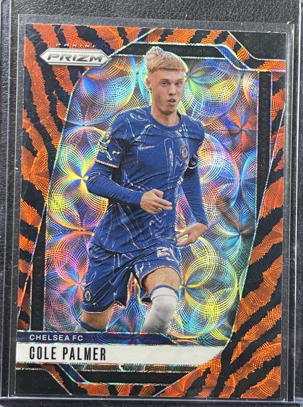 The Cole Palmer 2024 Prizm Premier League #90 Choice Tiger Stripe card is 1 of 93 Cole Palmer's card variations in the 2024 Prizm Premier League set being tracked by Sports Card Investor, including Base, Black & White Checker, Blue Mosaic, Breakaway, and Choice.