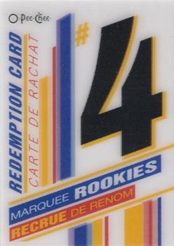 The Cole Perfetti 2021 O-Pee-Chee #RED-4 3 D Marquee Rookies Redemptions card is 1 of 2 Cole Perfetti's card variations in the 2021 O-Pee-Chee set being tracked by Sports Card Investor, including 3 D Marquee Rookies.