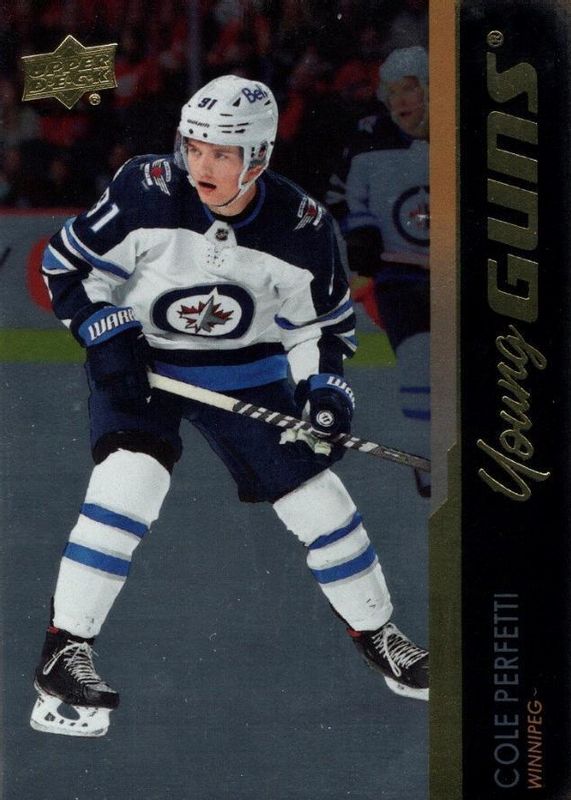 This card is 1 of 10 Cole Perfetti's card variations in the 2021 Upper Deck set being tracked by Sports Card Investor, including Program of Excellence Canvas, Young Guns Base, Young Guns - Clear Cut, Young Guns - Clear Cut Exclusives, and Young Guns - French.