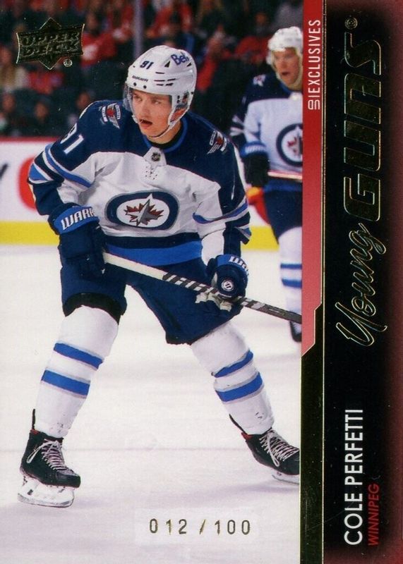 This card is 1 of 10 Cole Perfetti's card variations in the 2021 Upper Deck set being tracked by Sports Card Investor, including Program of Excellence Canvas, Young Guns Base, Young Guns - Clear Cut, Young Guns - Clear Cut Exclusives, and Young Guns - French.