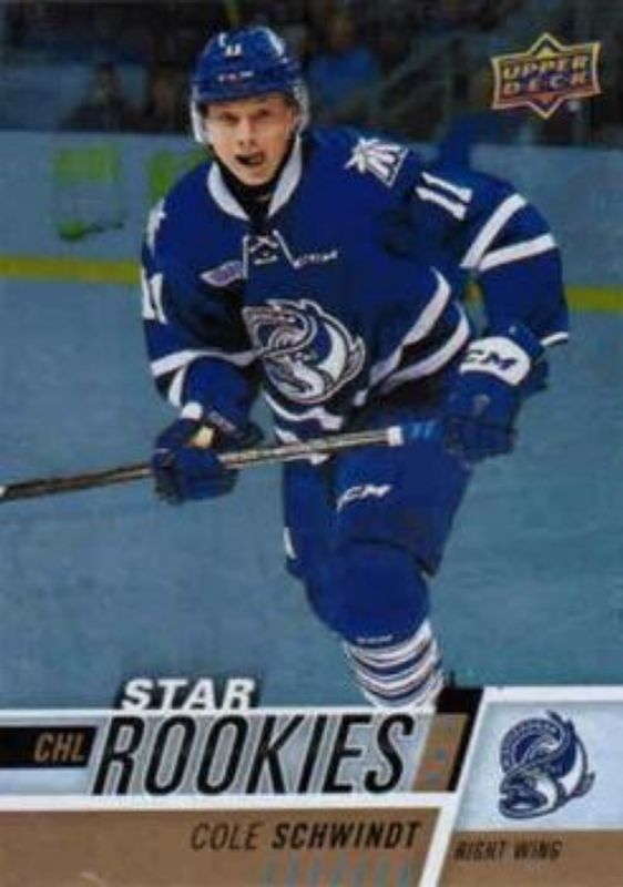 The Cole Schwindt 2017 Upper Deck CHL #398 Rainbow card is 1 of 9 Cole Schwindt's card variations in the 2017 Upper Deck CHL set being tracked by Sports Card Investor, including Base, Red Bordered, UD Exclusives /100, High Gloss /10, and Printing Plates Black /1.