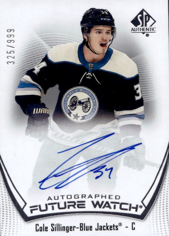 2021-22 SP Authentic Future Watch Auto Cole Sillinger Rookie /999 Blue Jackets