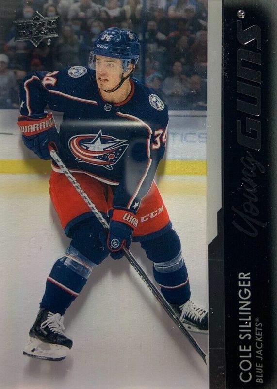 This card is 1 of 10 Cole Sillinger's card variations in the 2021 Upper Deck set being tracked by Sports Card Investor, including Young Guns Base, Young Guns Canvas, Young Guns - Clear Cut Exclusives, Young Guns - French, and Young Guns - Jumbo.