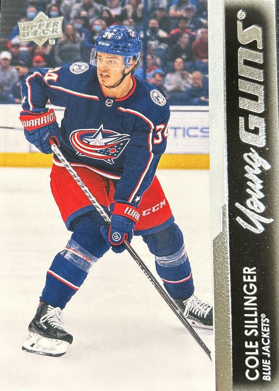 This card is 1 of 10 Cole Sillinger's card variations in the 2021 Upper Deck set being tracked by Sports Card Investor, including Young Guns Base, Young Guns Canvas, Young Guns - Clear Cut, Young Guns - Clear Cut Exclusives, and Young Guns - Jumbo.