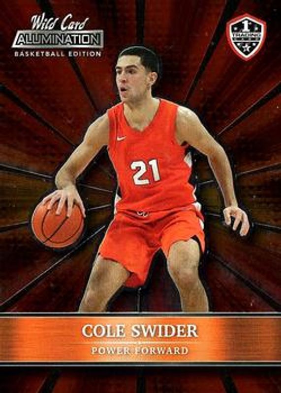 The Cole Swider 2021 Wild Card Alumination #ABC-15 Red Chase card is 1 of 71 Cole Swider's card variations in the 2021 Wild Card Alumination set being tracked by Sports Card Investor, including Base, 100 Stripe, 10 Stripe, 20 Stripe, and 50 Stripe.